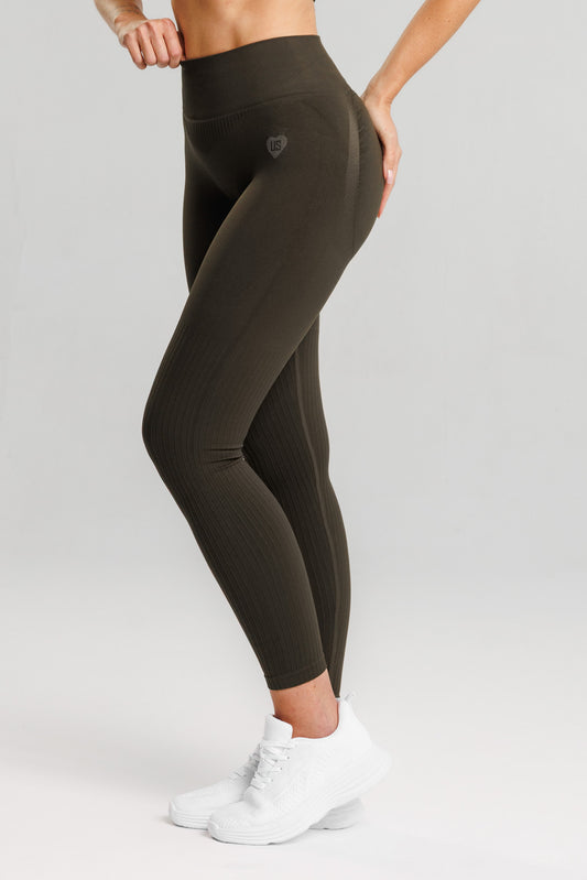 Legginsy bezszwowe prążkowane czekoladowe Sunset