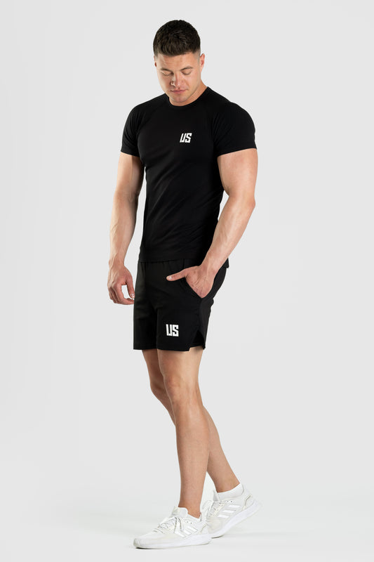 15% TANIEJZestaw bezszwowy czarny koszulka spodenki