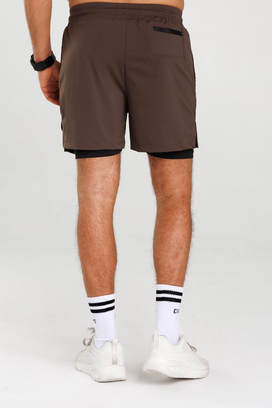 Spodenki treningowe 2w1 brązowe Camp Hill