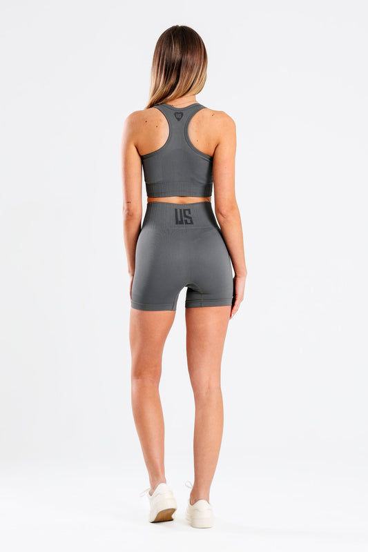 Zestaw bezszwowy prążkowany top + spodenki szary Sunset