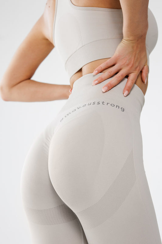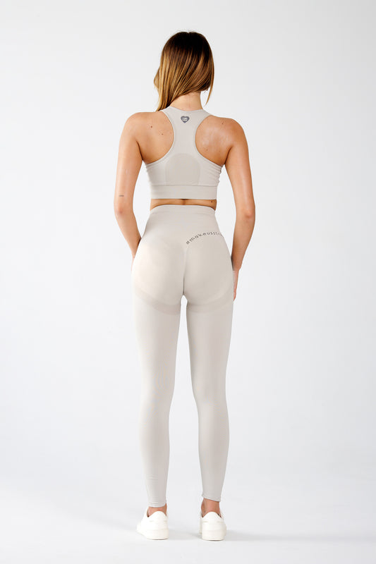 Zestaw bezszwowy sportowy top + legginsy PUSH UP cream Florence