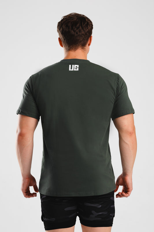 T-shirt bawełniany z nadrukiem khaki MAKEUS