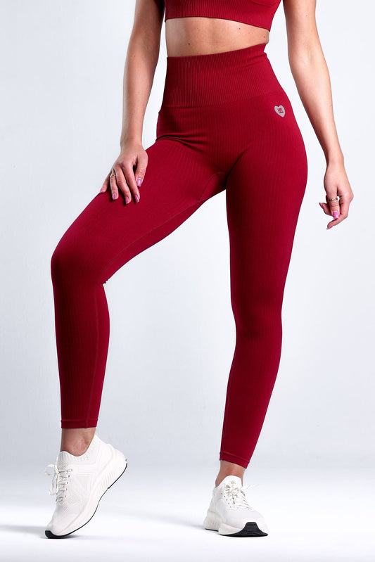 Legginsy bezszwowe prążkowane bordowe Sunset