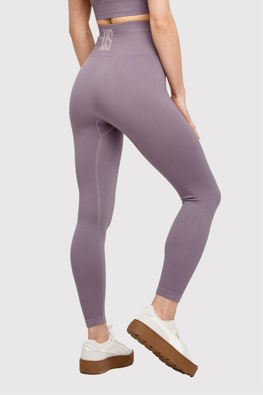 Legginsy bezszwowe prążkowane fioletowe Sunset