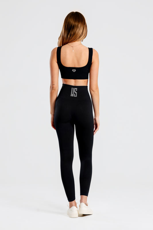 Zestaw bezszwowy prążkowany top + legginsy czarny Sunset