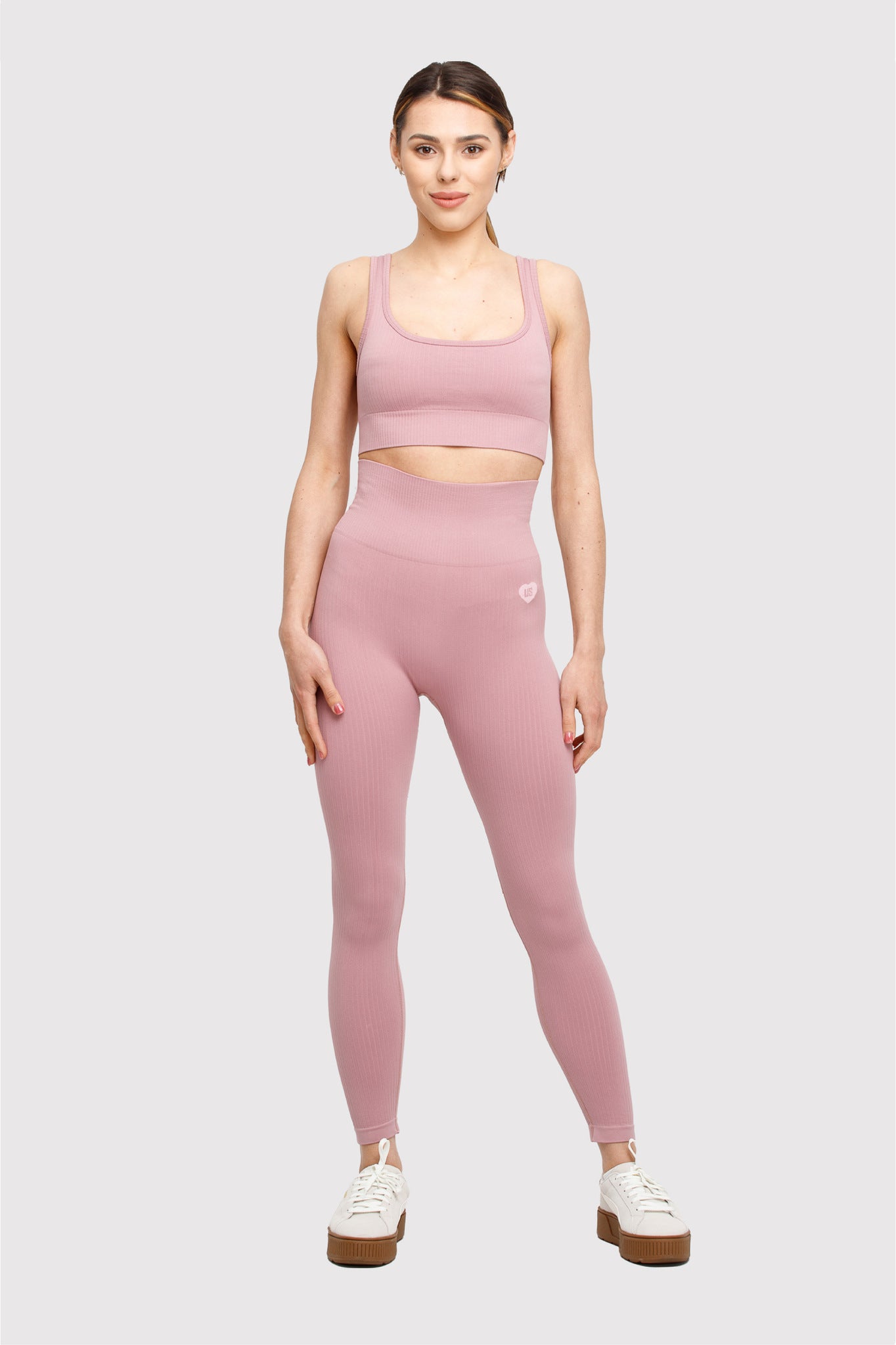 Biustonosz bezszwowy prążkowany brudny róż Sunset