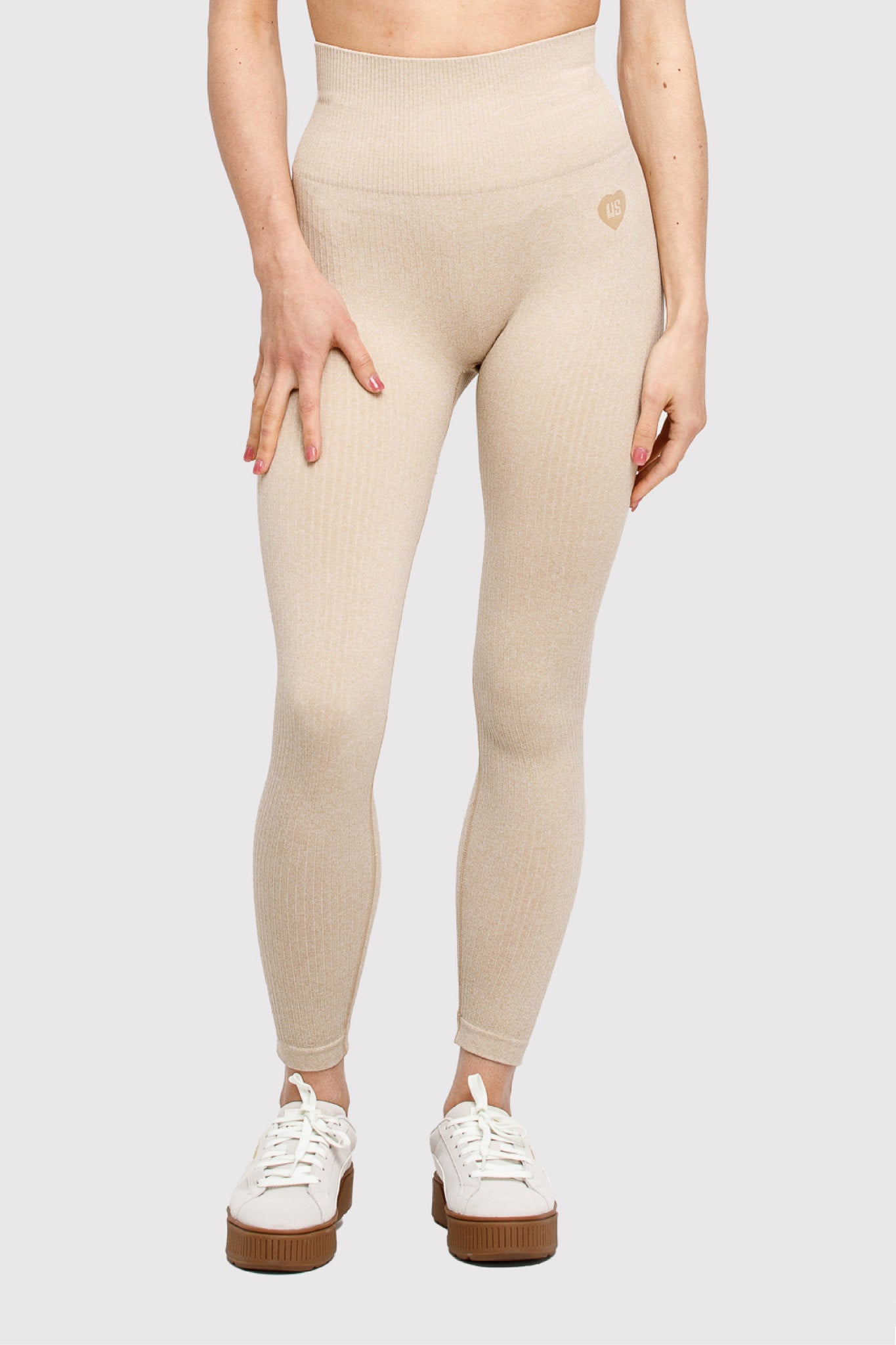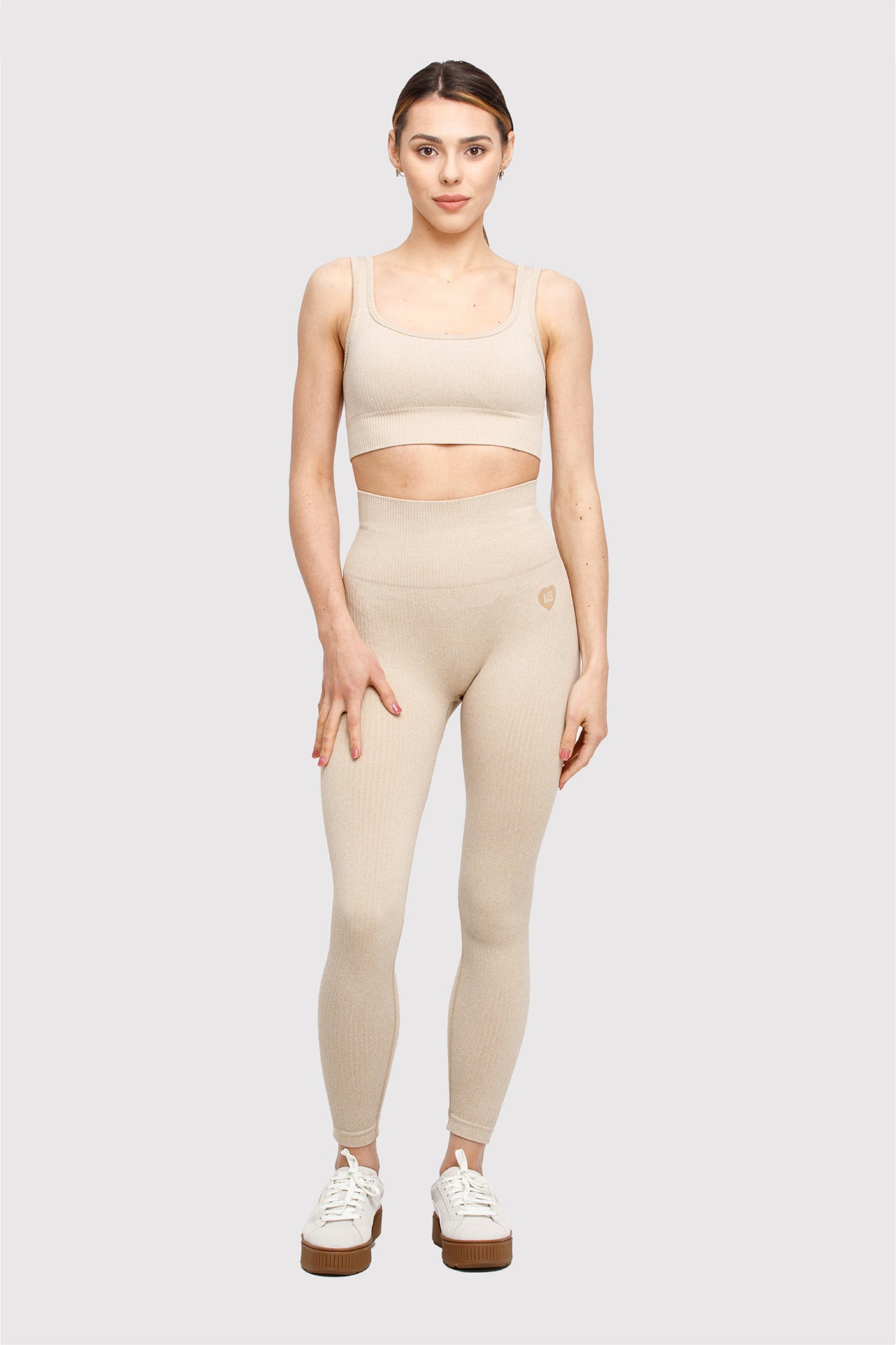 Legginsy bezszwowe prążkowane beżowe Sunset