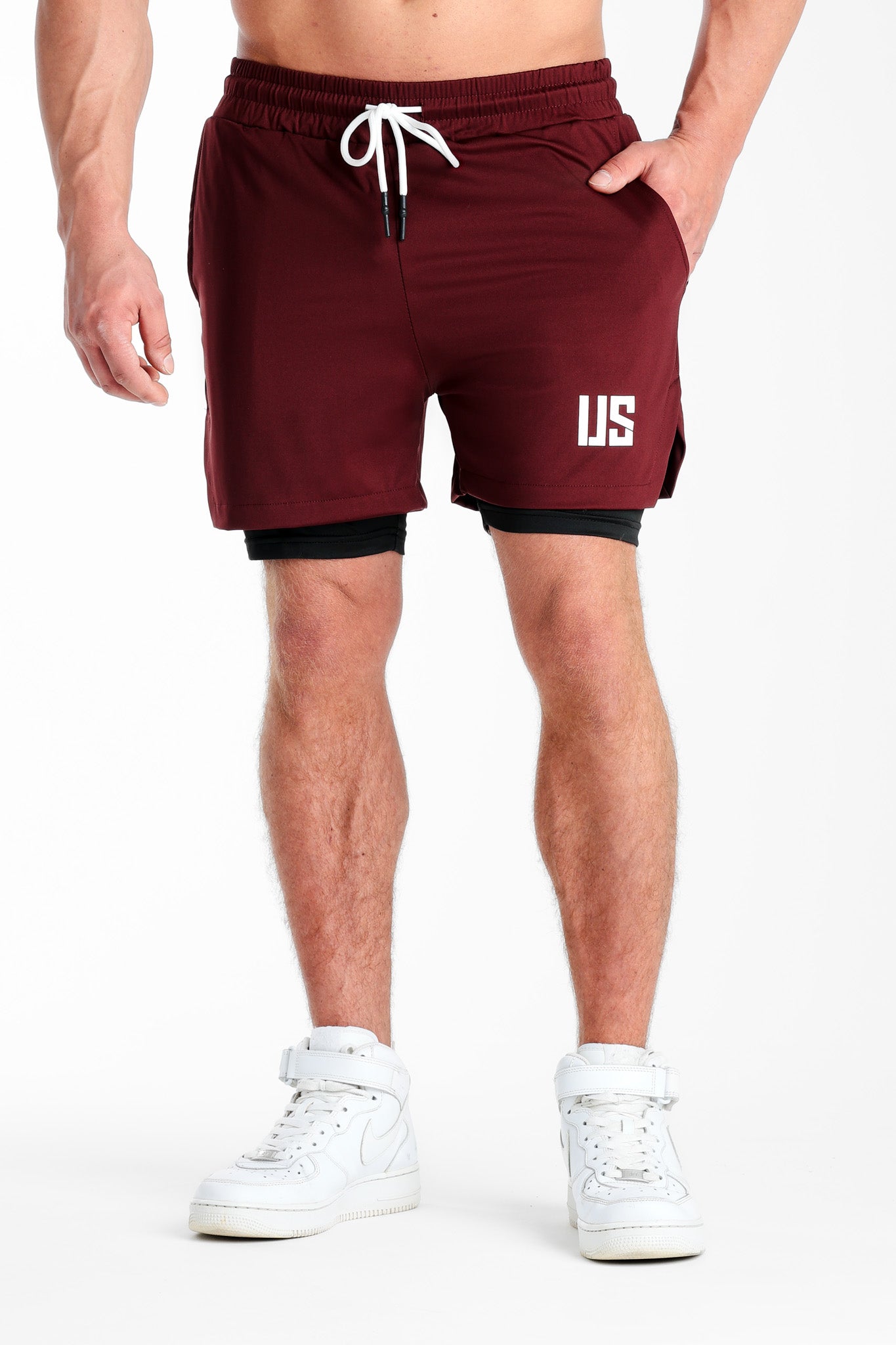 Spodenki treningowe 2w1 bordowe Camp Hill