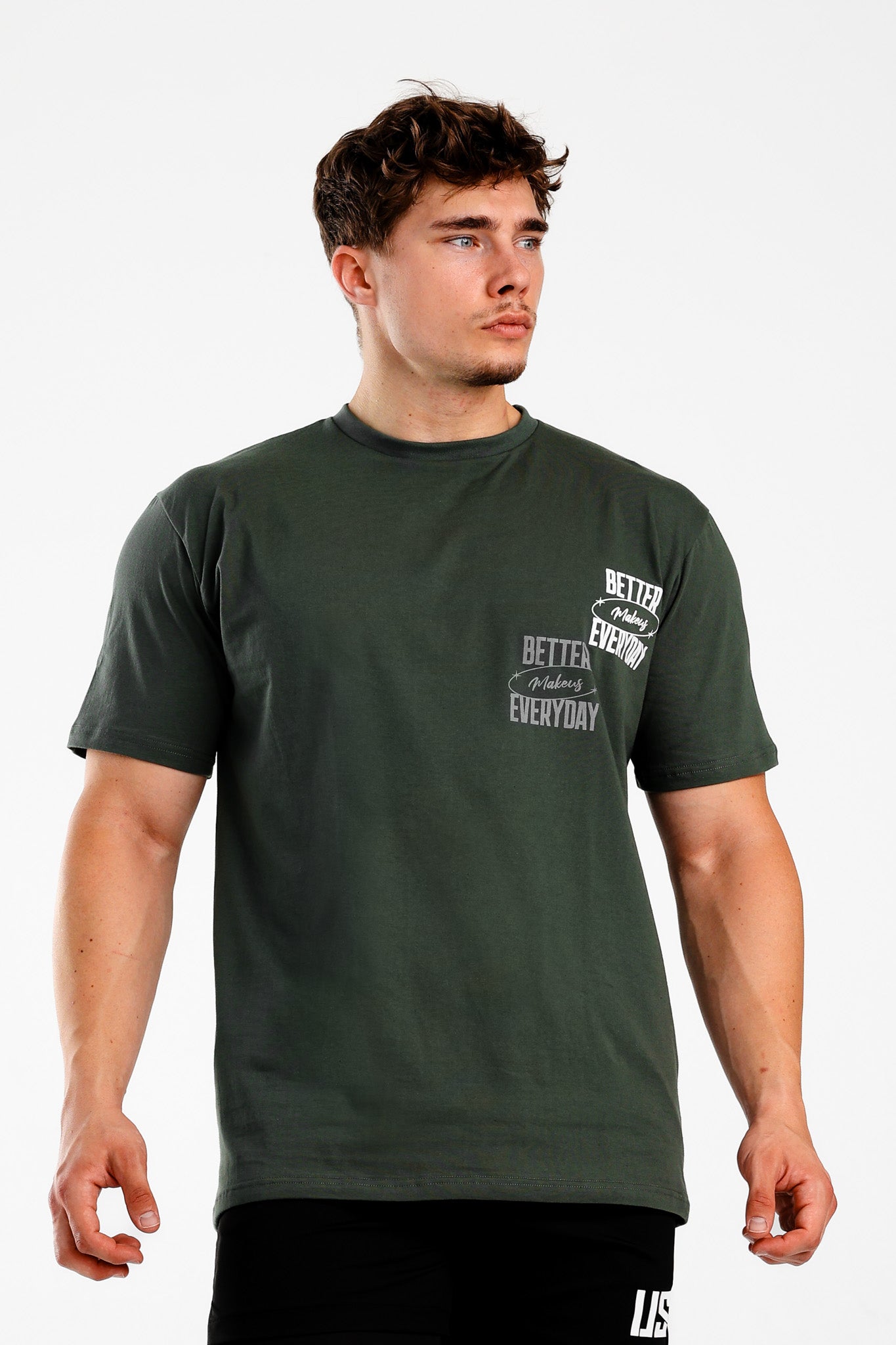 T-shirt bawełniany z nadrukiem khaki BE BETTER