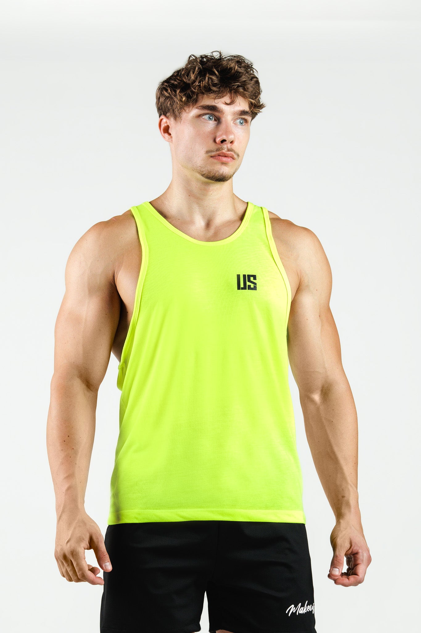 Tank Top na siłownię fluorescencyjny żółty z nadrukiem US