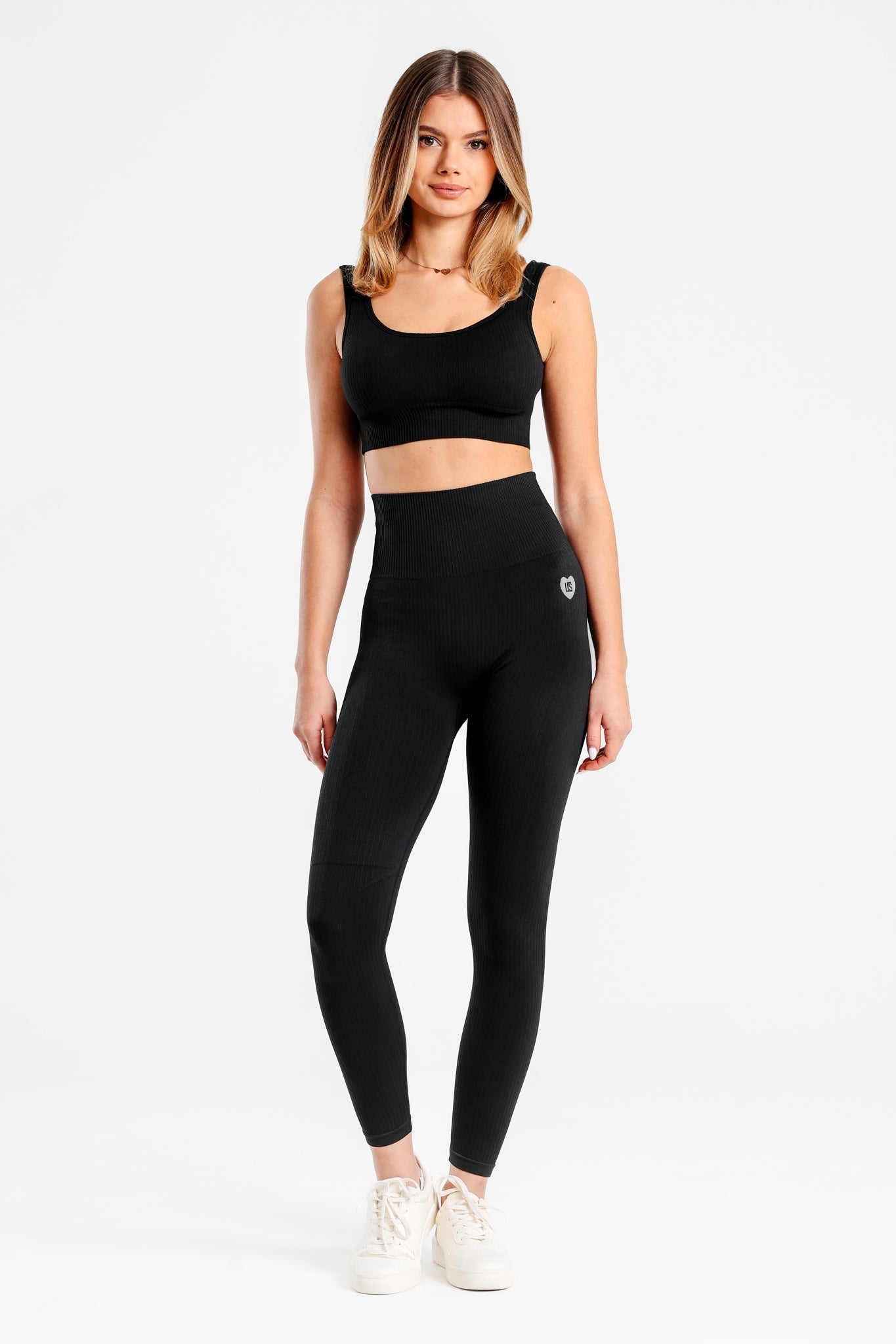Zestaw bezszwowy prążkowany top + legginsy czarny Sunset